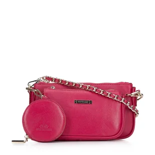 Damska torebka skórzana podwójna z etui na łańcuszku różowa