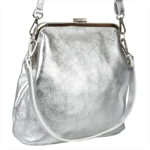 Damska torebka srebrna metaliczna skóra naturalna retro bigiel