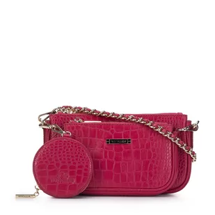 Damska torebka ze skóry o fakturze croco podwójna z etui różowa