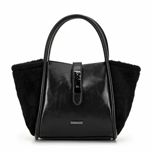 Materiał: Główna część torebki wykonana jest z ekoskóry o eleganckim połysku, który nadaje jej luksusowy wygląd i jest łatwy w pielęgnacji. Połączenie z miękkim, sztucznym futerkiem nadaje torebce unikalny charakter i zapewnia przyjemne w dotyku wykończenie. Detale: Delikatne, grafitowe logo na froncie podkreśla ekskluzywność torebki, dodając jej subtelnego uroku. Organizacja wnętrza: Kuferek wyposażony jest w otwartą kieszonkę, idealną do przechowywania drobnych przedmiotów.