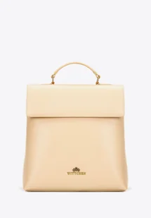 Damski plecak ze skóry naturalnej z klapą beżowy