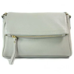 Urocza Włoska skórzana listonoszka Vera Pelle , pojemna złote okucia Szara MCZ45GR