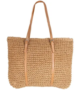 Duża prostokątna torba plażowa słomkowa z rączkami z eko skory