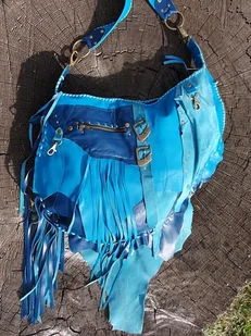 Unikatowa, ręcznie wykonana torba ze skóry naturalnej wysokiej jakości, obuwniczej, impregnowanej (nieprzemakalnej). Szyta rzemieniem. Na łączeniach wzmacniana jest metalowymi nitami. Wymiary tore ...