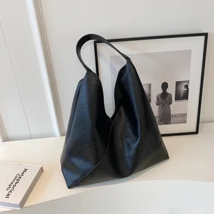 Duża skórzana torba na ramię - Czarny