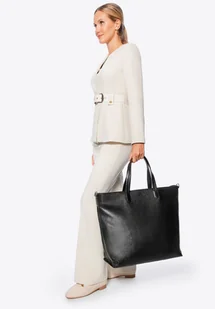 Torebka XXL – maksymalna pojemność, nowoczesna forma, codzienna wygoda Szukasz torby, która sprosta intensywnemu dniu, a przy tym zachwyci stylem? Ta torba na ramię w rozmiarze XXL to odpowiedź na potrzeby nowoczesnej kobiety – pojemna, funkcjonalna i stylowa. Wykonana z miękkiej, wysokiej jakości skóry naturalnej, łączy minimalistyczny design z praktycznymi rozwiązaniami. Wyposażona w dwie skórzane rączki oraz odpinany, regulowany pasek z wytrzymałego poliestru, daje Ci pełną swobodę noszenia – w dłoni, na ramieniu lub przewieszoną na skos. Dla kogo? To idealny wybór dla kobiet, które potrzebują dużej, stylowej torby do pracy, na uczelnię czy weekendowe wyjazdy. Bez problemu zmieścisz w niej dokumenty w formacie A4, laptop, kosmetyczkę, lunchbox i wszystko to, co towarzyszy Ci na co dzień.