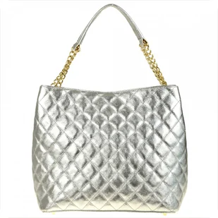 Duża torba pikowana srebrna XL skóra naturalna