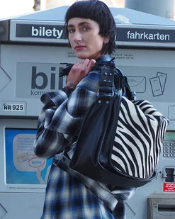 Duża torba skórzana. Zestaw Black and white z paskiem z frędzlami