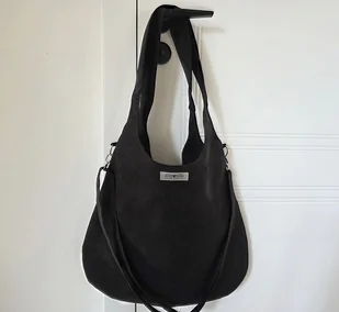 Piękna duża torebka wykonana z ekozamszu, mocnego materiału, bawełniana podszewka, zapinana na suwak, w środku dwie kieszonki 20cm x 16cm, długość paska regulowana, Szerokość 48 cm, wysokość bez uchwytów 39 ...