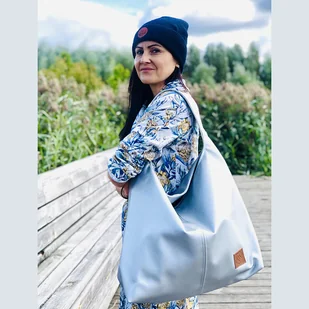 Duża torba worek ze skóry ekologicznej Mili Chic MC7 - srebrna