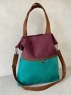 Duża torba z zapinaną kieszenią - oberżyna, zieleń, koniak