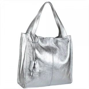 Duża torebka włoska shopper bag srebrna metaliczna skóra naturalna Indeks: 494 Proponujemy Paniom najnowszy wzór - torebkę skórzaną srebrną na ramię , typu shopper produkcji włoskiej w rozmiarze XL, wykonaną z najwyższej jakości skór. Torebka posiada zgrabny wygląd jest bardzo lekka, wygodna i elegancka. Pasuje do wielu różnych stylizacji i wyróżnia się doskonałą jakością wykonania. Prezentowany model idealnie przyda się każdej kobiecie w życiu codziennym ze względu na dużą pojemność i niewielką wagę/skóra jest bardzo lekka/.