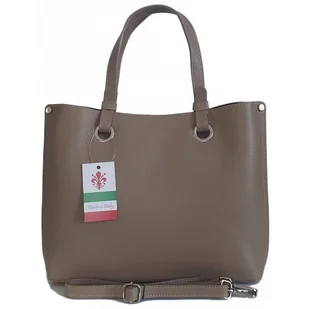 Duża Włoska skórzana torba Shopper bag trzy komory na ramię mieści A4 ,Vera Pelle Beżowa VOM65T