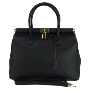 Duży kufer- torba kłódka A4 Włoska Vera Pelle , Czarna AL35N