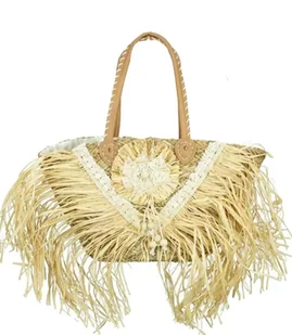 duży naturalny koszyk styl boho hand made niezwykle ozdobny środek z poszewką zapinany na suwak Niezwykle ozdobny naturalny koszyk w stylu boho Przód ozdobio...