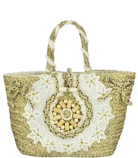duży naturalny koszyk styl boho hand made niezwykle ozdobny środek z poszewką zapinany na suwak Niezwykle ozdobny naturalny koszyk w stylu boho Przód ozdobio...