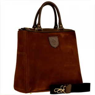 Elegancka skórzana torebka kuferek brąz koniak zamsz