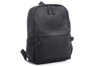 SpecyfikacjaElegancki i pojemny plecak miejski w kolorze czarnym. Uszyty starannie z mocnej i gładkiej skóry ekologicznej z trwałymi metalowymi okuciami i solidnymi uchwytami gwarantującymi długotrwałe użytkowanie. Materiał jest odporny na przemakanie, woda spływa po jego powierzchni. Plecak posiada pojemną komorę główną zapinaną za pomocą zamka błyskawicznego z dwoma suwakami. Wnętrze plecaka wyłożone zostało wysokogatunkową, odporną na zabrudzenia poliestrową podszewką.