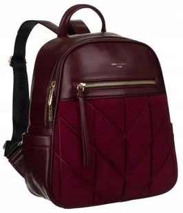 Odszyty z najwyższej jakości sztucznej, ekologicznej skóry z frontowym panelem obszytym pikowanym eko zamszem. Jednokomorowy, zamykany zamkiem błyskawicznym, środek na podszewce. W wyposażeniu uchwyt na dłoń i długie, regulowane szelki.