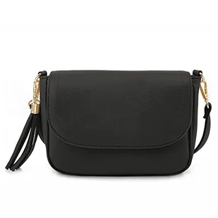 EVVE Małe torby crossbody dla kobiet modne torebki siodłowe z frędzlami wegańska skórzana torba na ramię, Czarny, Nowoczesny-kompaktowy