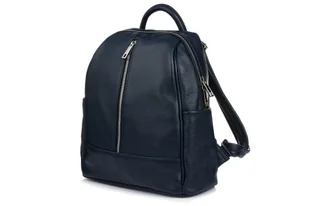 Rewelacyjny, solidny, skórzany, damski plecak w fantastycznych kolorach, wyprodukowany we Włoszech, z włoskiej skóry naturalnej Plecak wyprodukowano we Włoszech z wysokiej jakości naturalnej, miękkiej skóry licowej, o "groszkowej" fakturze Wykonany jest niezwykle starannie, z dbałością o najdrobniejsze szczegóły Posiada solidne okucia w srebrnym kolorze Na froncie znajduje się zamykana na suwak kieszeń o wymiarach 27 cm wysokości i 25 cm szerokości, do której można schować mniejsze akcesoria W komorze są trzy boczne kieszonki: największa z nich jest zasuwana, dwie mniejsze- są otwarte Dno zostało usztywnione Wnętrze wykończono solidną podszewką Po bokach znajdują się otwarte kieszenie, w których można przechowywać podręczne rzeczy lub np. butelkę z napojem, owoc Skórzana rączka pozwala w wygodny sposób przenosić plecak w ręce, a także zawiesić go na wieszaku lub krześle Plecak ma również skórzane szelki, regulowane w zakresie od ok. 45 cm do ok. 85 cm Prezentowany jest model w kolorze granatowym!