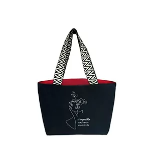 hello-bags. Damska torba na płótnie premium z zamkiem błyskawicznym, wewnętrzna kieszeń zapinana na zamek błyskawiczny i czerwona podszewka z płótna., czarny