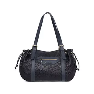 Hexagona Kolekcja damska Paryż Republika - czarna warzywo skóra cielęca kołnierz transformacja zużyta torebka na ramię mała torebka, L: 26,5 x wys. : 28 x P: 9 cm