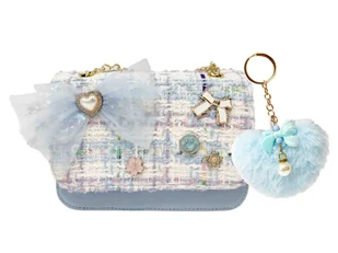 Tweedowa torebeczka z brelokiem i kokardą Hot Focus 175748FD Elegancka torebka typu crossbody z tweedu ozdobiona kokardą z cekinów, zawieszką (pluszowym brelokiem) w kształcie serca i łańcuszkiem. Kwiatowe akcenty i zabawne detale nadają jej stylowy i fantazyjny wygląd. Pomieści niezbędne akcesoria małej miłośniczki mody i trendów. Idealna na imprezy, jako prezent lub na co dzień. Zapinana na magnetyczny zatrzask.