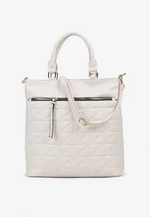 Jasnobeżowa Torebka z Pikowaniem z Rączkami i Regulowanym Paskiem Ozdobiona Kieszonką na Suwak Bavela