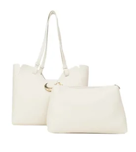 VEZZE Torba skórzana shopper bag jasny beż na ramię i do ręki złote okucia