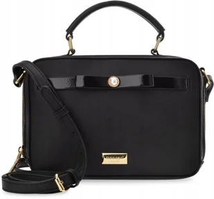 Stylowa torba damska typu crossbody. Jednokomorowy model z jasną, logowaną podszewką został wzbogacony o praktyczne kieszonki na drobiazgi, zapewniając wygodę w codziennym użytkowaniu. Ozdobna kokardka z przodu dodaje torbie uroku i subtelnego charakteru. Torba zawieszona jest na małej rączce oraz regulowanym pasku. SPECYFIKACJA Wysokość: