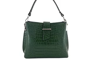 Torebka skórzana na ramię - CROCO - Zielony Ciemny