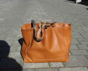 Koniakowa duża skórzana torba ze złotymi uchytami