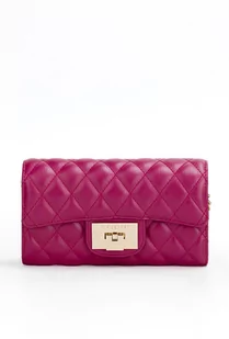 Mała kopertówka damska z pikowaniem o wymiarach: 21 cm x 12 cm x 3,5 cm. Kopertówka jednokomorowa o jasnym wnętrzu oraz kieszonkami na drobiazgi. Torba zawieszona na pasku z łańcuszkiem z możliwością jego regulacji. Torbę należy przechowywać w załączonym woreczku