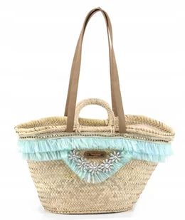 Opis: -bogato zdobiony przód torebki: frędzle wykonane z rafii , ozdobna lamówka, błyszczące ozdoby -długie, wygodne rączki -krótkie rączki do trzymania torebki w dłoni -zamykana na zamek błyskawiczny -ręcznie wykonana Kolor: beżowy Czyszczenie: wytrzeć wilgotną szmatką Wymiary w cm (WxSxG): 25x65x18 Podane wymiary są przybliżone i mogą nieznacznie różnić się w rzeczywistości, ponieważ jest to produkt wykonany ręcznie.