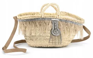 Opis: -bogato zdobiony przód torebki: frędzle wykonane z rafii , lamówka z kryształkami, duża ozdoba w kolorze srebrnym -długi regulowany pasek -krótkie rączki do trzymania torebki w dłoni -zamykana na zamek błyskawiczny -ręcznie wykonana Kolor: beżowy Czyszczenie: wytrzeć wilgotną szmatką Wymiary w cm (WxSxG): 18x45x11 Podane wymiary są przybliżone i mogą nieznacznie różnić się w rzeczywistości, ponieważ jest to produkt wykonany ręcznie.