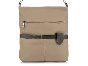 okucia są w srebrnym kolorze torba ma długi, regulowany i doczepiany pasek w całości wykonana jest ze polskiej skóry naturalnej. Jest łatwa w utrzymaniu czystości, z przodu duża, zasuwana kieszeń oraz dwie mniejsze nie zasuwane z czego jedna ma ozdobną klapę zapinaną na zatrzask magnetyczny z tyłu zasuwana, podręczna kieszeń torebka zamykana na jest na suwak w środku dwie kieszenie: jedna zasuwana, jedna nie zasuwana np.