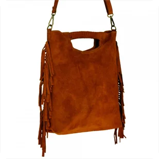 Lekka zamszowa torebka na ramię ozdobnymi frędzlami camel Indeks: 1192 Proponujemy Paniom torebkę skórzaną produkcji włoskiej w rozmiarze L zamszową w kolorz...