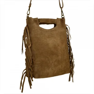 Lekka zamszowa torebka na ramię ozdobnymi frędzlami taupe Indeks: 1212 Proponujemy Paniom torebkę skórzaną produkcji włoskiej w rozmiarze L zamszową w kolorz...