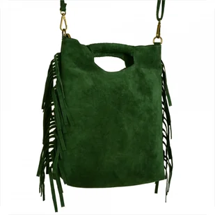 Lekka zamszowa torebka na ramię ozdobnymi frędzlami zieleń butelkowa Indeks: 1606 Proponujemy Paniom torebkę skórzaną produkcji włoskiej w rozmiarze L zamszo...