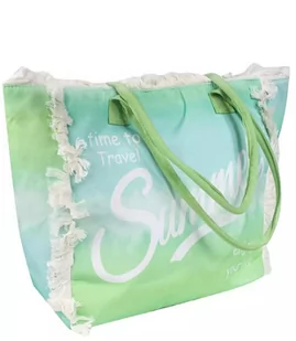 duża torba z napisem SUMMER ombre ozdobiona frędzelkami idealna na plażę Duża, letnia torba z grubego materiału Posiada podszewkę Zapinana na suwak Kontrasto...