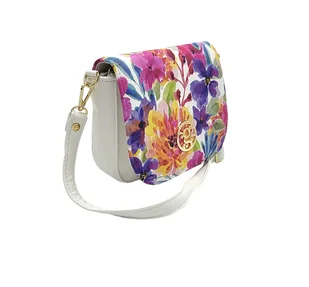 Torebka Mała Listonoszka Skórzana Modna Włoska Vera Pelle Niebieskie Kwiaty K03 : Kolory - Wielokolorowy