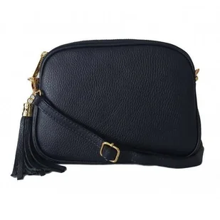 Włoska zamszowa listonoszka, nerka Vera Pelle złote okucia kółka Granatowa LN633BS