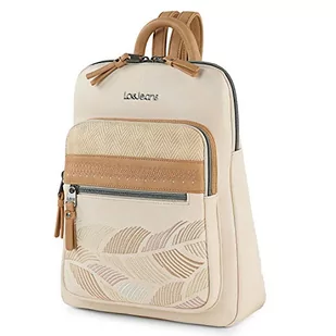 Lois - Plecak dla kobiety z regulowanymi ramiączkami. Zamknięcie zamka błyskawicznego. Tylne i przednie kieszenie. Haftowana skóra eco 310723, Beżowy