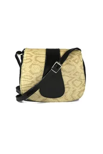 Damska torebka listonoszka o charakterystycznym designie w wersji mini. Front torebki to połączenie skóry naturalnej w dwóch kolorach: beżowej i czarnej skór...