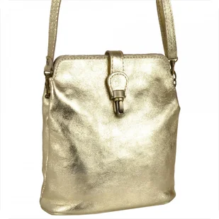 Mała skórzana listonoszka złota Indeks: 595 Proponujemy Paniom piękną torebkę skórzaną / miękka i lekka skóra/ - listonoszkę w nowym fasonie, produkcji włoskiej, w rozmiarze S, niedużą w kolorze złotym bardzo lekką. Torebka posiada zgrabny wygląd jest bardzo lekka, wygodna, elegancka oraz świetnie pomieści najpotrzebniejsze rzeczy, które chcemy mieć pod ręką. Wyprodukowana została ze starannie wyselekcjonowanych skór naturalnych. Pasuje do wielu różnych stylizacji.