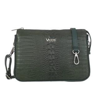 Torebka z wysokogatunkowej, włoskiej skóry licowej. Faktura skóry krokodyla. Przedmioty w torebce można wygodnie posegregować dzięki trzem komorom i dwóm kieszeniom w różnych rozmiarach. Przystosowana do noszenia na ramieniu. wykonana starannie, z dużą dbałością o detale przód torebki pokryty fakturą skóry krokodyla trzy komory zamykane jednym suwakiem zamykana na suwak kieszeń w komorze głównej zamykana na suwak tylna kieszeń miła w dotyku podszewka w komorach i kieszeniach okucia w srebrnym kolorze odpinany pasek na ramię z regulacją długości