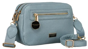 Miejska mała torebka damska ze skóry ekologicznej PETERSON niebieska listonoszka z dwoma paskami w komplecie złote okucia kieszonki na suwak