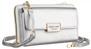 Miejska torebka-portfel ze skóry ekologicznej na ramię z kieszenią na telefon Cavaldi, srebrny