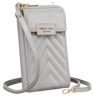 Mini torebka listonoszka portfel na karty i dokumenty kieszeń na telefon skóra ekologiczna w jodełkę Cavaladi, szary